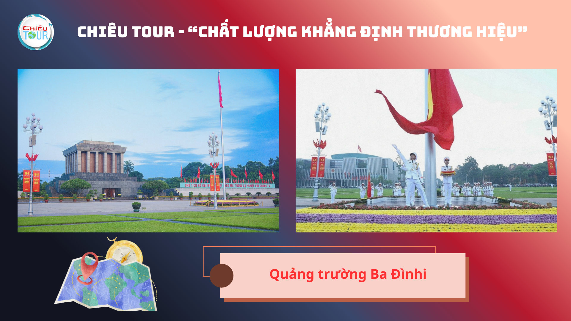 Đoàn đến Quảng trường Ba Đình – khu vực trung tâm chính trị của Việt Nam. Đây là nơi Chủ tịch Hồ Chí Minh đọc bản Tuyên ngôn Độc lập ngày 02/09/1945. Tại khu vực này, du khách có thể tham quan bên ngoài Lăng Chủ tịch Hồ Chí Minh, Phủ Chủ tịch và khu nhà sàn (tham quan tùy theo thời gian mở cửa và quy định hiện hành). Quảng trường có diện tích rộng, được chia thành nhiều ô cỏ xanh, là nơi thường xuyên diễn ra các sự kiện lớn của quốc gia.