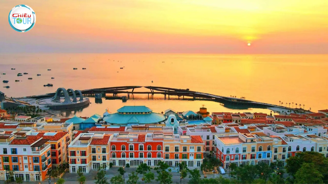 Lấy cảm hứng từ kiến trúc Địa Trung Hải, khu phức hợp gây ấn tượng với những dãy nhà rực rỡ sắc màu, mái vòm cổ kính và quảng trường mở hướng biển. Đây là điểm check-in không thể thiếu trong các Tour du lịch Phú Quốc Tết Âm Lịch, đặc biệt đẹp vào buổi chiều khi ánh nắng nhuộm vàng cả không gian. -