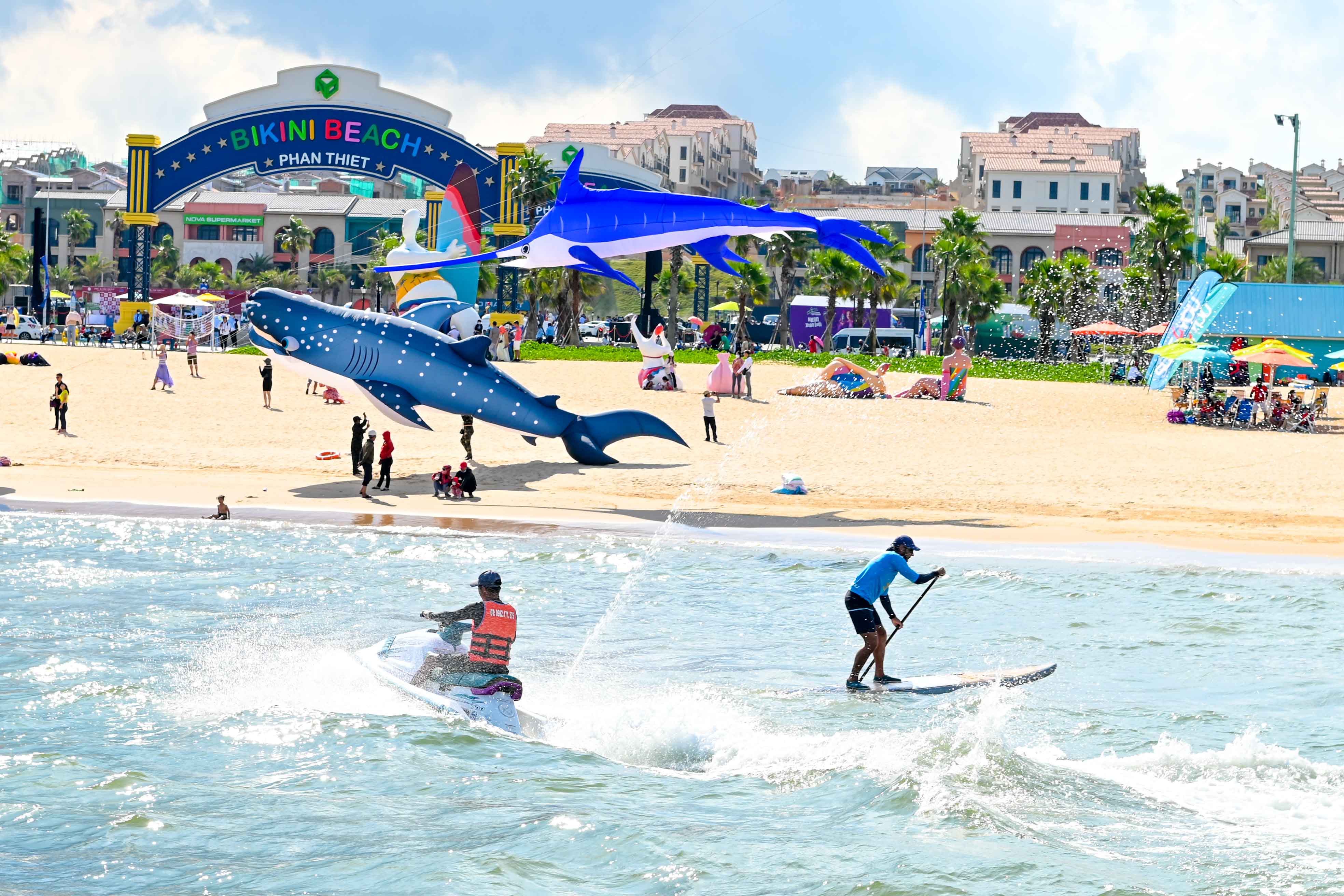 09h30: Đến TP. Phan Thiết, xe đưa đoàn đến tham quan Công viên biển Bikini Beach Novaworld. Tại đây, quý khách có cơ hội tham quan và chụp ảnh với những biểu tượng độc đáo, lần đầu tiên xuất hiện tại khu vực này, ví dụ như biểu tượng khổng lồ, cổng Cầu Vồng, cánh cửa đỏ, nhà Gỗ hoặc khung ảnh mang logo Novaworld Phan Thiết. Bên cạnh đó, khu quảng trường trung tâm rộng lớn cũng là nơi tổ chức nhiều sự kiện và hoạt động sôi động, ví dụ như Muscle Zone, khu tập gym ngoài trời và các hoạt động thể thao khác. Quý khách tự do dạo biển và chụp ảnh với những góc "sống ảo" đẹp nhất.
