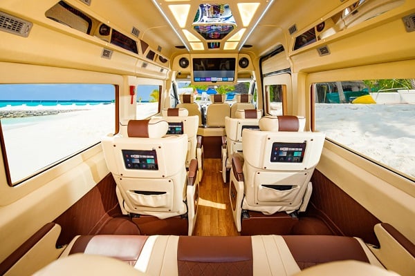 - Hệ thống giải trí trên xe: Xe được trang bị hệ thống âm thanh tiên tiến và màn hình TV, giúp khách hàng giải trí bằng cách nghe nhạc, hát hò, xem phim trong suốt hành trình.